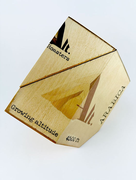 Being the abbreviation for altitude, Alt. Coffee Roasters is a brand concept based on coffee production excellence. It was inspired by the importance altitude has in coffee bean growth. The shape of the box was inspired by the shape of mountains giving a nod to where the beans grow.